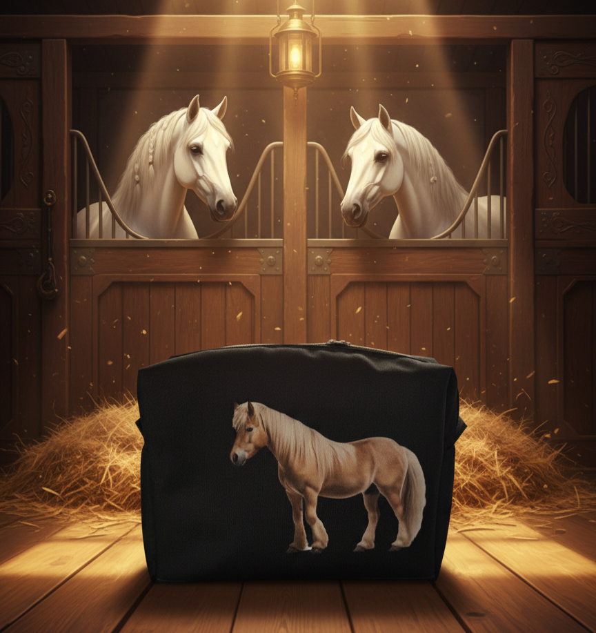 Dopřejte si kousek kouzla do své kabelky nebo přebalovací tašky. Tato stylová taštička s nádhernou ilustrací koňe neni jen praktický pomocníkem, ale i doplňkem,který vám vykouzlí úsměv na tváři při každám otevření.