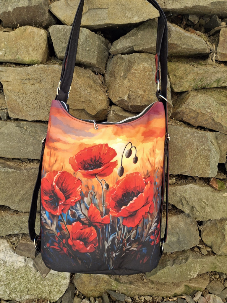 Lze nosit jako kabelku přes rameno nebo jako batoh stačí stáhnout popruhy,velice jednoduché a praktické řešení.