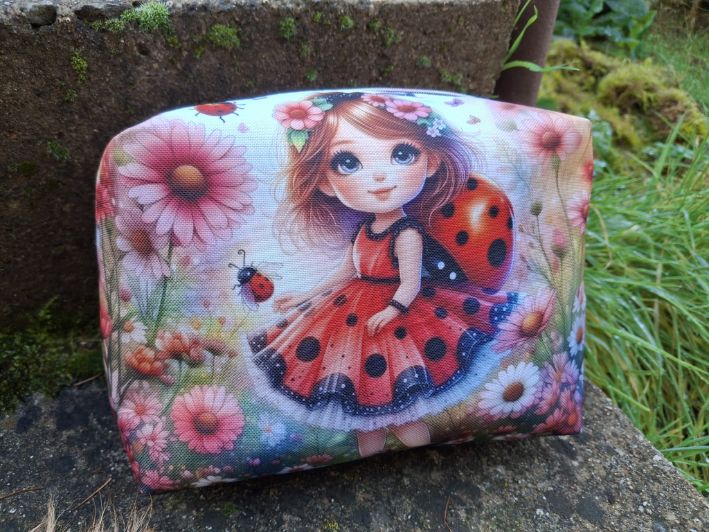 Dopřejte si kousek kouzla do své kabelky nebo přebalovací tašky. Tato stylová taštička s nádhernou ilustrací berušky neni jen praktický pomocníkem, ale i doplňkem,který vám vykouzlí úsměv na tváři při každám otevření.