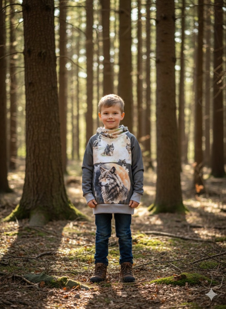 Originální mikina kterou si vaše dítě zamiluje,perfektní střih zajistí maximální pohodlí a nádherný motiv vlka rozzáří každý dětský autfit. Udělejte radost svým nejmenším kouskem,který v šatníku rozhodně nepřehlédnete.