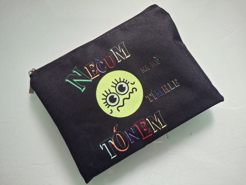Uživatelská recenze produktu Mini kapsička 2v1: Organizér na drobnosti i obal na nákupní tašku - nápis