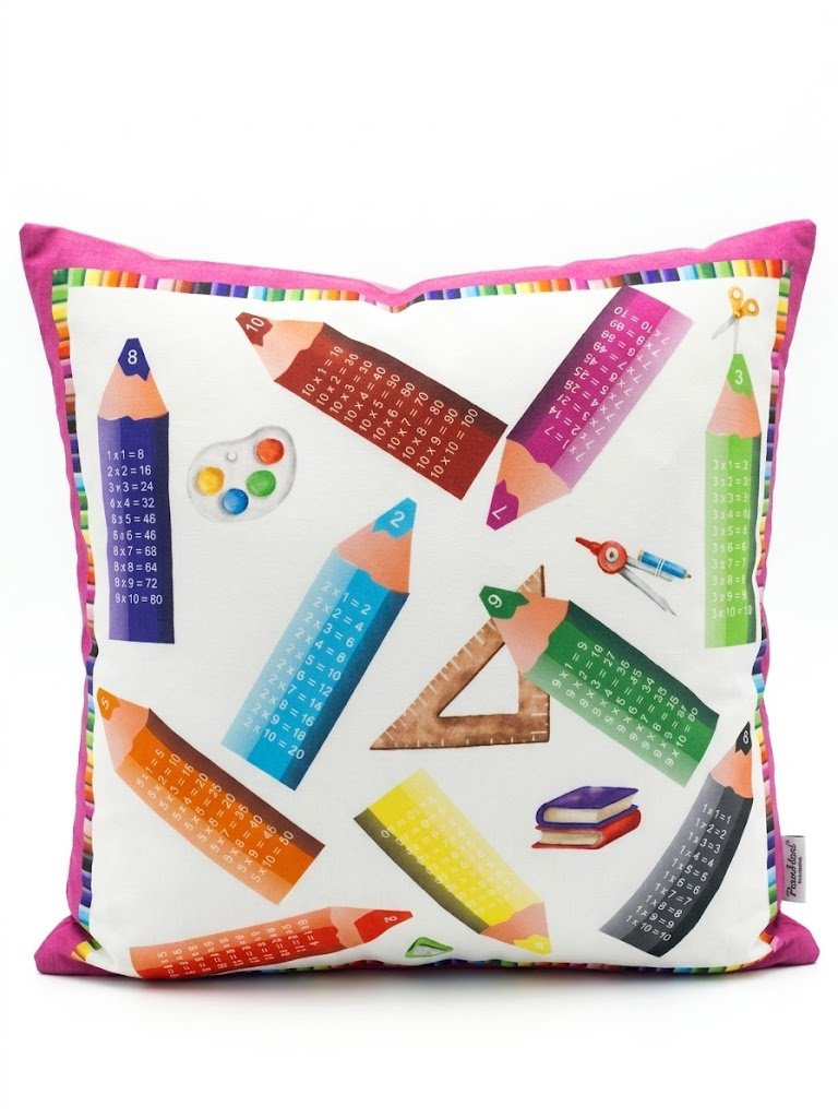 Tento veselý a praktický polštář od Tvorky.cz je ideálním společníkem pro každého školáka. Motiv barevných pastelek, na kterých je přehledně zobrazena násobilka, dělá z učení matematiky zábavu. Polštář navíc zútulní každý dětský pokojíček a stane se oblíbeným parťákem na odpočinek.